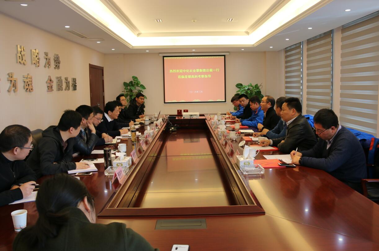 2017年3月10日,中化農業覃衡德總裁蒞臨荃銀高科考察指導。荃銀高科總經理助理王玉林熱情接待了覃衡德總裁一行,并陪同參觀、交流、座談。