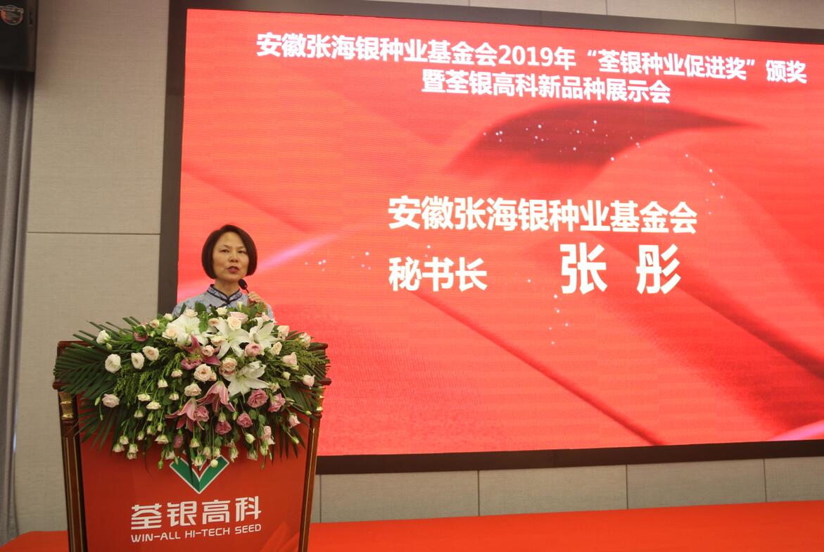 ??? 荃銀高科副董事長、總經(jīng)理、基金會副理事長張琴致歡迎辭并作報告,她結(jié)合當(dāng)前種業(yè)形勢,詳細(xì)介紹了荃銀高科的創(chuàng)新與發(fā)展,展示了荃銀高科的核心競爭力,并闡述了發(fā)起成立安徽張海銀種業(yè)基金會的初衷及在履行社會責(zé)任方面所做出的努力。會上,她向“荃銀種業(yè)促進(jìn)獎”獲得者表示祝賀,并指出,“種業(yè)強(qiáng)國”是“中國夢”的重要組成部分,希望在座的種業(yè)人能夠矢志不渝,以終為始,為我國現(xiàn)代種業(yè)發(fā)展作出新的貢獻(xiàn)。