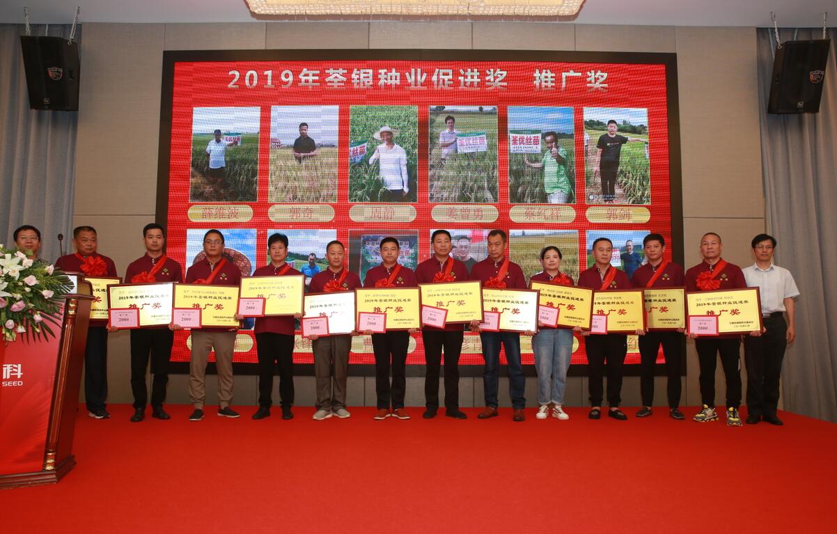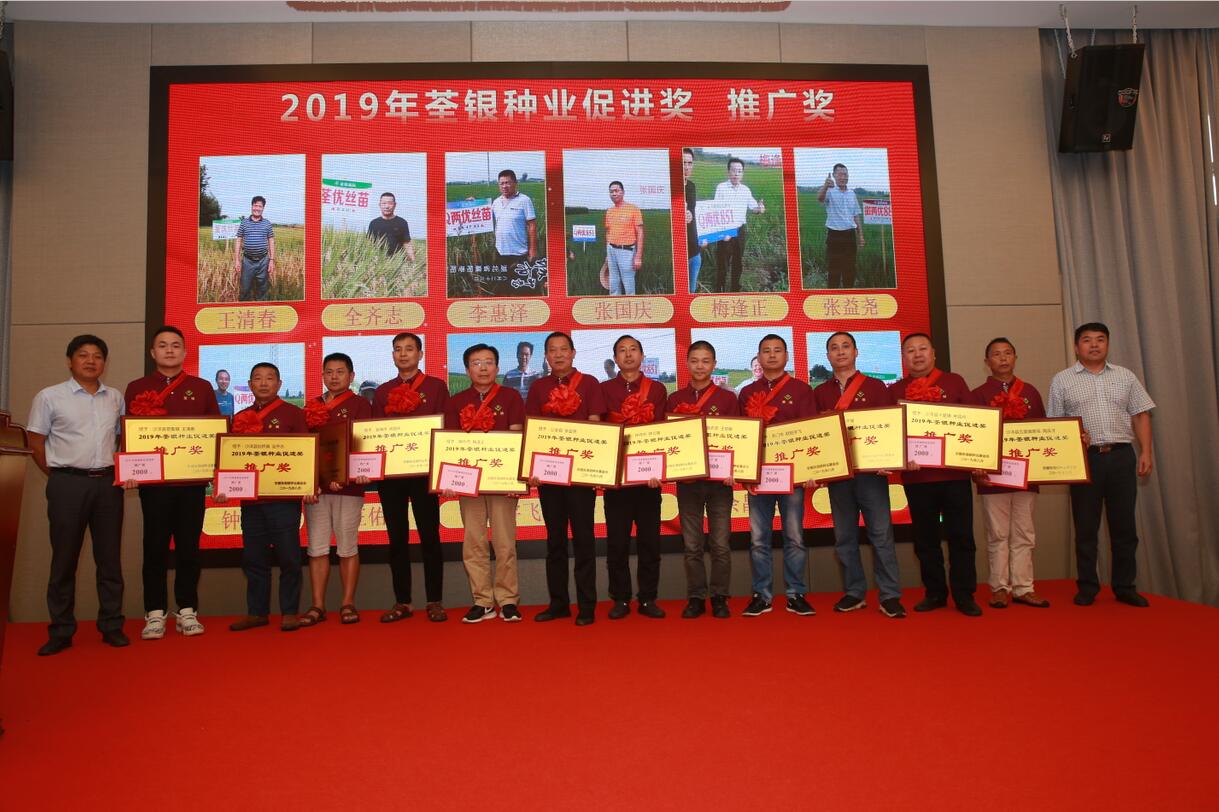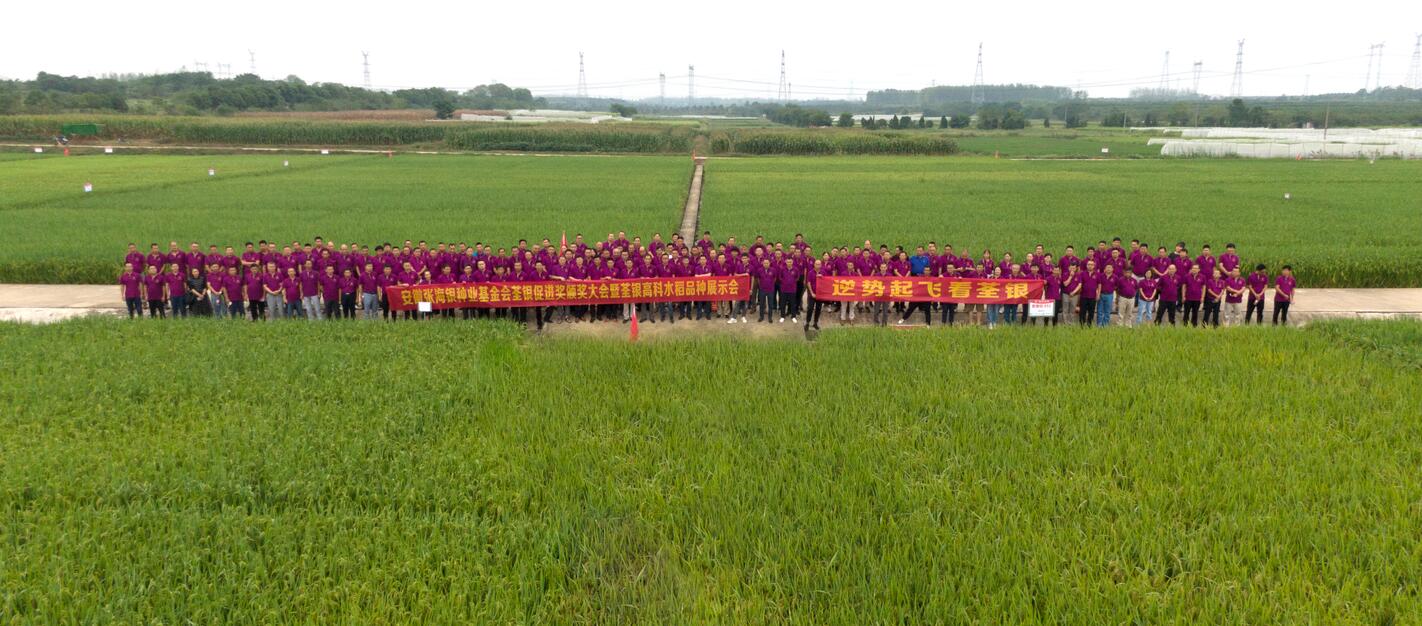 ??? 2019年9月1日,安徽張海銀種業(yè)基金會“荃銀種業(yè)促進(jìn)獎”頒獎大會暨荃銀高科水稻品種展示會在合肥召開。中國種業(yè)十大功勛人物、荃銀高科創(chuàng)始人、安徽張海銀種業(yè)基金會理事長張海銀,安徽省種子管理總站原站長、基金會專家組顧問成員、“荃銀種業(yè)促進(jìn)獎”評審委員會主任孔令傳,荃銀高科副董事長、總經(jīng)理、基金會副理事長張琴,荃銀高科董事、常務(wù)副總經(jīng)理、基金會副理事長王玉林,荃銀高科副總經(jīng)理、荃銀農(nóng)科院院長、首席技術(shù)官張從合,基金會秘書長張彤,荃銀高科總經(jīng)理助理劉義銳、監(jiān)事會主席謝慶軍,荃銀高科工會主席、基金會監(jiān)事鄭滿生,中化現(xiàn)代農(nóng)業(yè)、中化化肥等單位領(lǐng)導(dǎo)嘉賓,以及來自湖北省16個縣區(qū)180多位三農(nóng)一線種業(yè)工作者參加了會議。