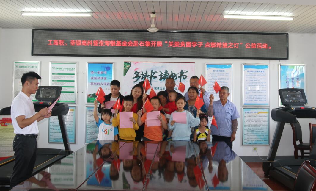 ??? 鄭滿生主任簡要介紹荃銀高科情況,表示在加強企業發展的同時履行社會責任,積極參與社會公益事業,本次活動荃銀高科向基金會捐贈2萬元,定向用于資助石集社區10名適齡貧困學子,希望他們能夠好好學習,克服困難,健康成長。今后,公司可結合雙方實際,向石集社區提供瓜菜良種種植及技術服務。